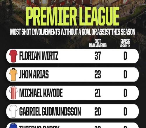 维尔茨本赛季英超参与37次射门,是0球0助的球员中最多的