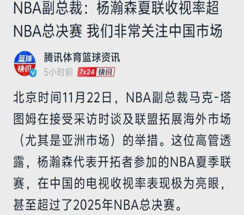 数字不会说谎。对阵灰熊的夏季联赛仅在腾讯体育一个平台就吸引520万免费观众,这个数字远超ESPN直播状元弗拉格首秀的110万人。更令人震惊的是,即便需要付费观看的比赛,仍有340万中国球迷掏钱买单。央视转播数据显示,杨瀚森比赛的收视率直接碾压了2024-25赛季NBA季后赛全部场次——要知道这仅仅是夏季联赛,NBA全年最不受关注的赛事阶段!